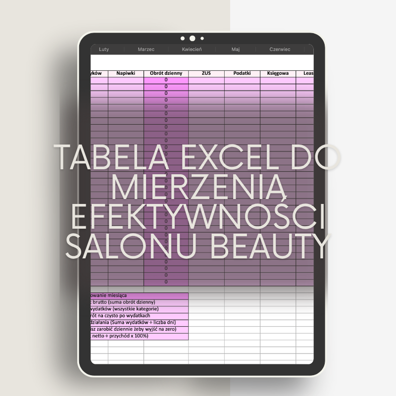 Ta tabela została stworzona specjalnie dla kobiet, które prowadzą salon kosmetyczny, klinikę beauty, gabinet PMU lub fryzjerski — i chcą w końcu rozumieć liczby, które stoją za ich sukcesem.